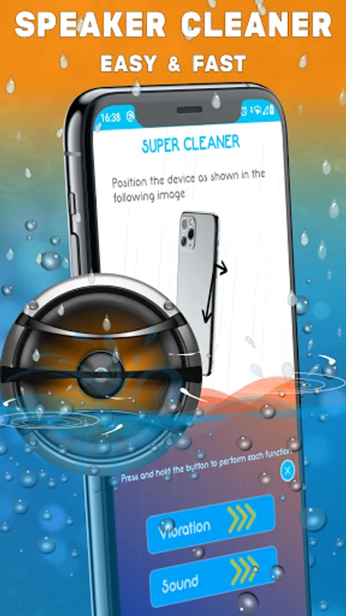 Speaker Cleaner - Application to clean the cell phone speaker using sounds and vibrations. It is the safest way to extract the water from the speaker since this way you avoid opening the cell phone or taking it to a repair technician.