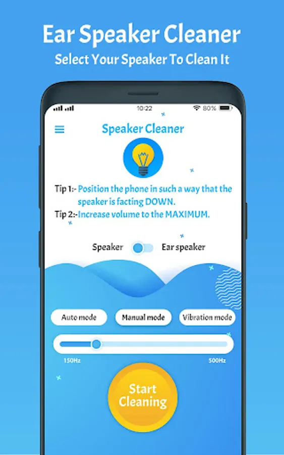 In seconds, users can clean and remove water from the speaker. Users can choose between cleaning a loud or an ear speaker with a simple slider in this speaker cleaner App. This simple method of extracting water from the speaker is very easy to do and has a rate of success of over 80%. There are three cleaning modes like auto mode, manual mode, & vibration mode in this Super Speaker Cleaner application.