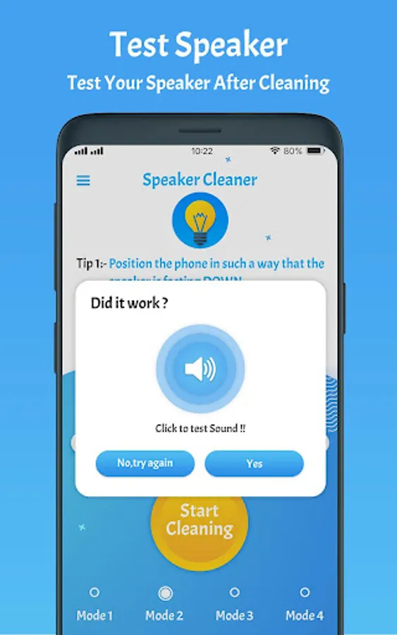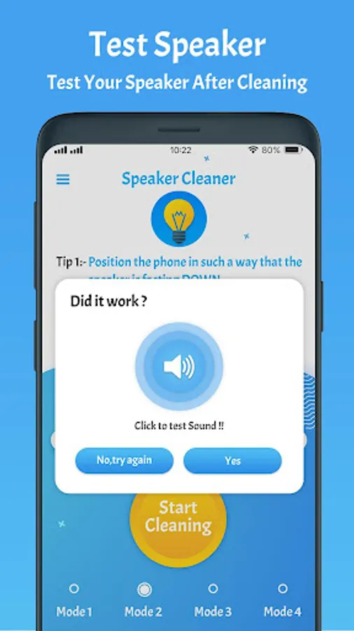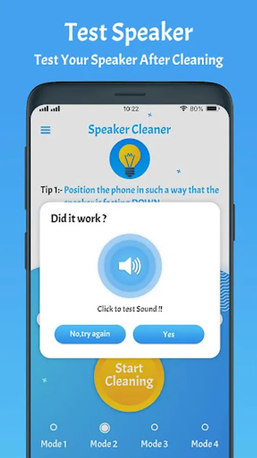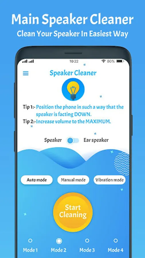 The Speaker Cleaner - Remove Water is the mobile speaker app has a few inbuilt cleaning modes to help you with great success remove trapped water inside the speaker which is as below: