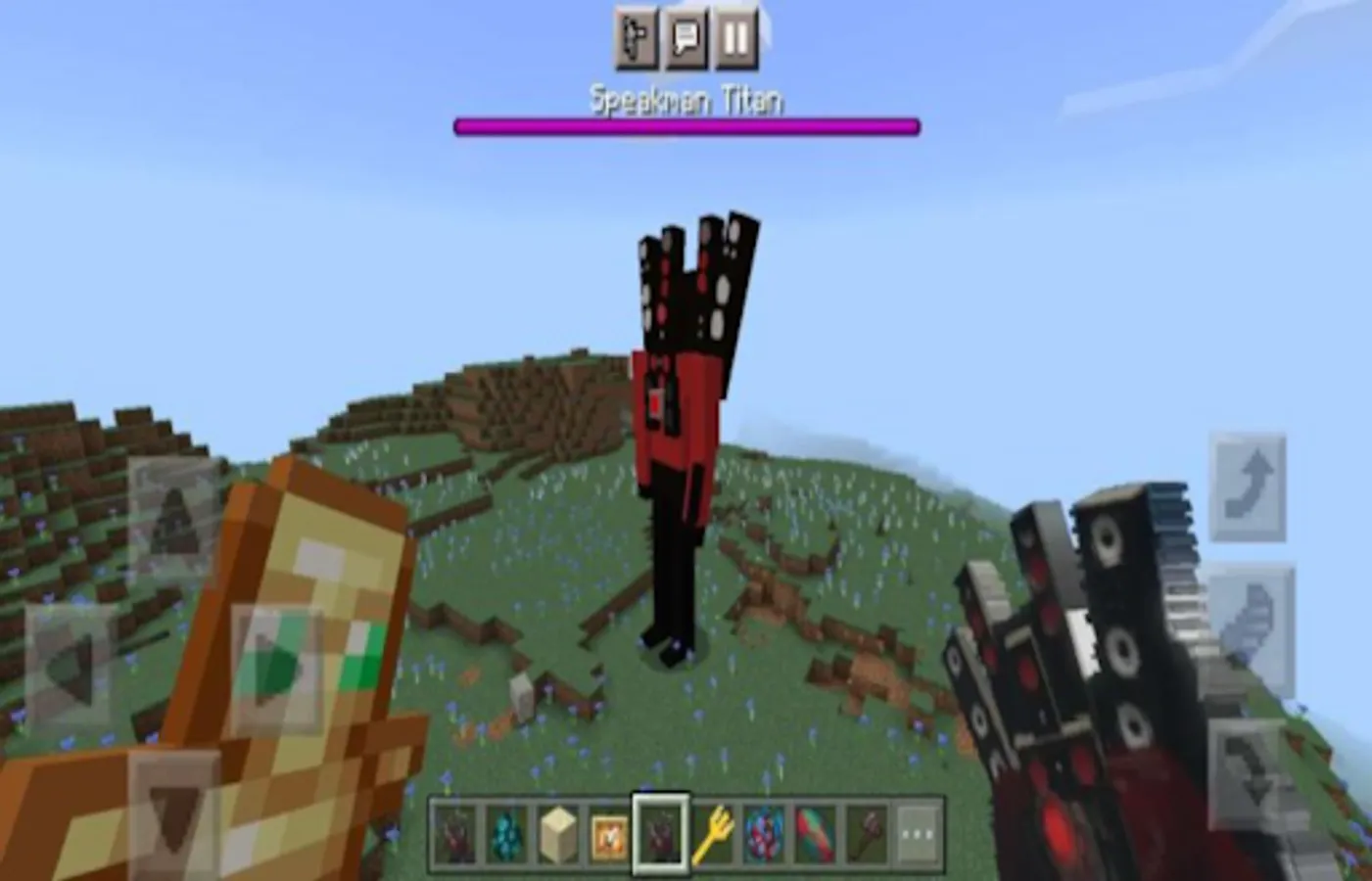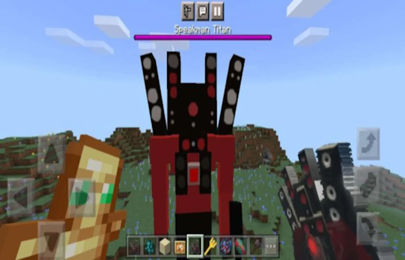 Titan Speakerman is a Titan created by the Speakermen Army as to aid the Cameramen. The Titan dons a red jacket with black pants and has a red core opposed to a light blue one.