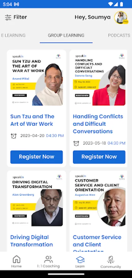 * Users can subscribe to the platform and experience personality assessments, group learning sessions, videos, blogs and podcasts - all delivered by SpeakIn experts.