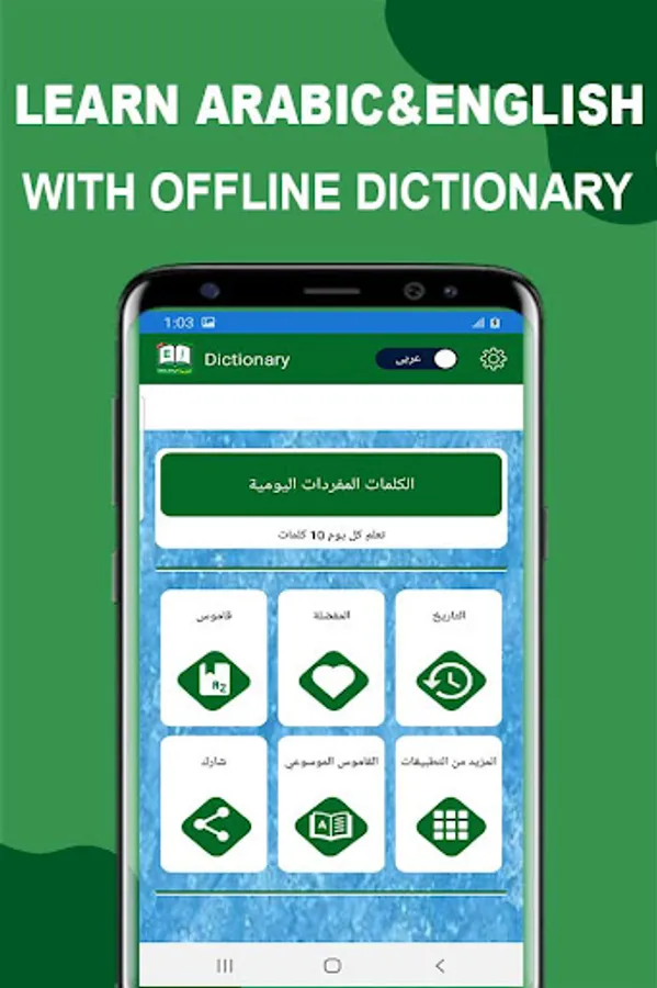 Get this dictionary now and check meaning and synonyms of any English or Arabic word. This Easy to use dictionary is very handy for all of you. Just click on the Install button and get this latest Arabic to English Dictionary for free.