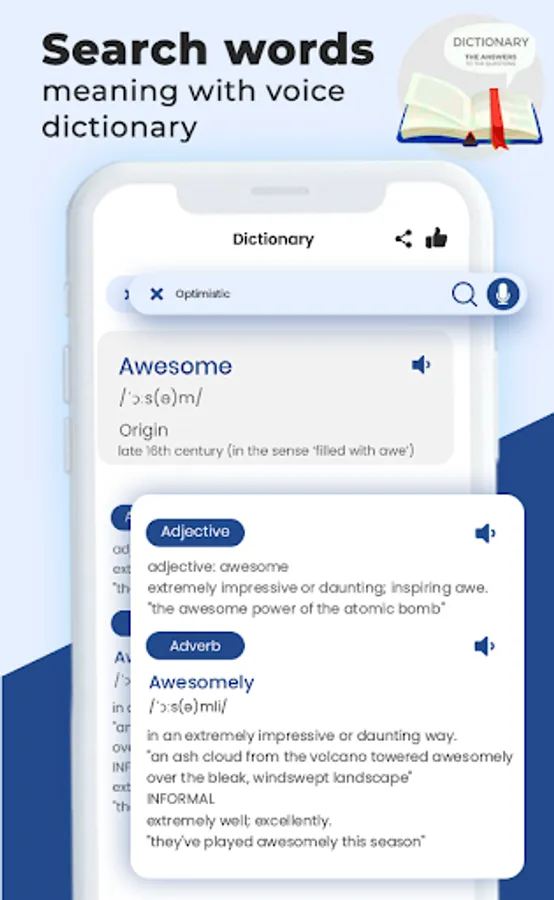Speak and translator app is also equipped with voice & text dictionary, you can search the meaning of words through voice or text input, The voice dictionary is simple to use just press mic and speak or say the word for which you want to know the meaning and just in microseconds you will get the meaning.