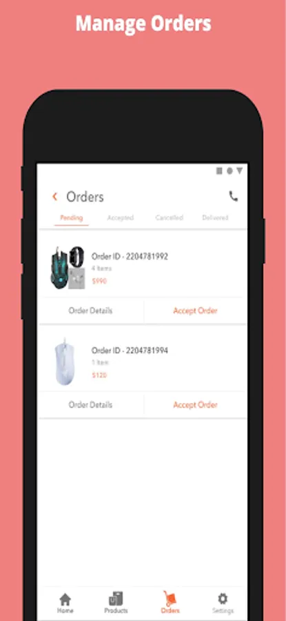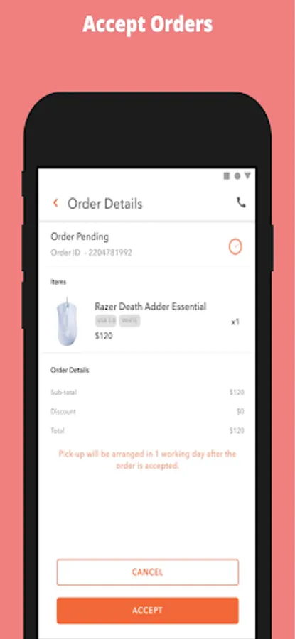 Merchants will get push notification for upcoming orders. They can Proceed with it.