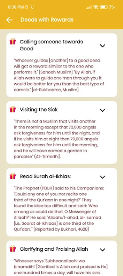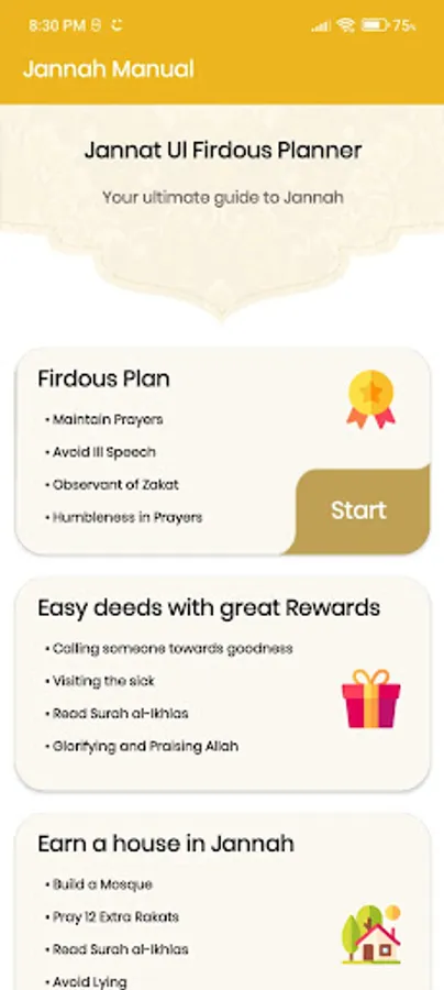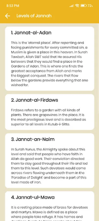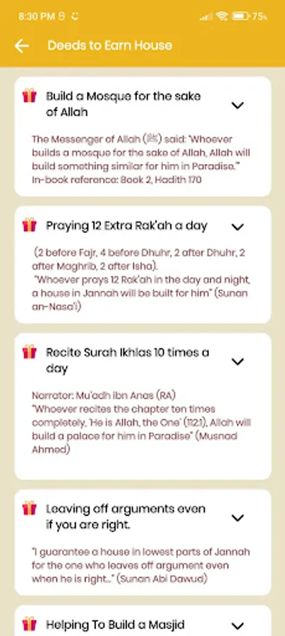 The app also has some great deeds that offer great rewards as per our religion Islam. It also shows users the specific deeds to earn a house in Jannah. It has information about the doors of jannah and gates of Jannah.