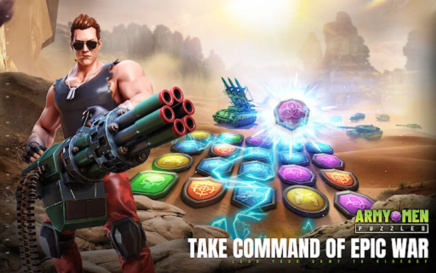 Attention: Army Men & Puzzles is a free-to-play army men themed match-3 strategy game, while some items and functions are available through in-game purchases.