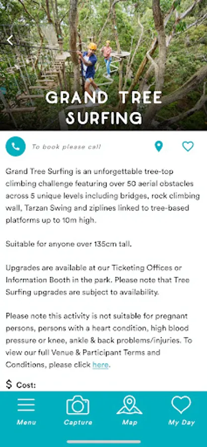 • Tree Surfing Participants can easily sign their waivers prior to their session as well as hire onsite lockers