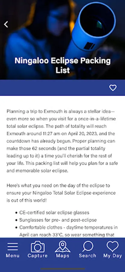 Connect with everything Exmouth and the Ningaloo Reef has to offer. Explore the local landmarks and attractions, discover hidden gems and events, and experience the area like never before with our easy-to-use mobile app.