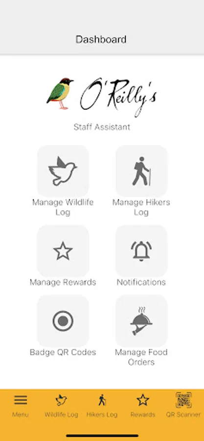A tool for O’Reilly’s staff to manage customer rewards, public wildlife log, hikers log, manage and send notifications, and display badge QR codes.