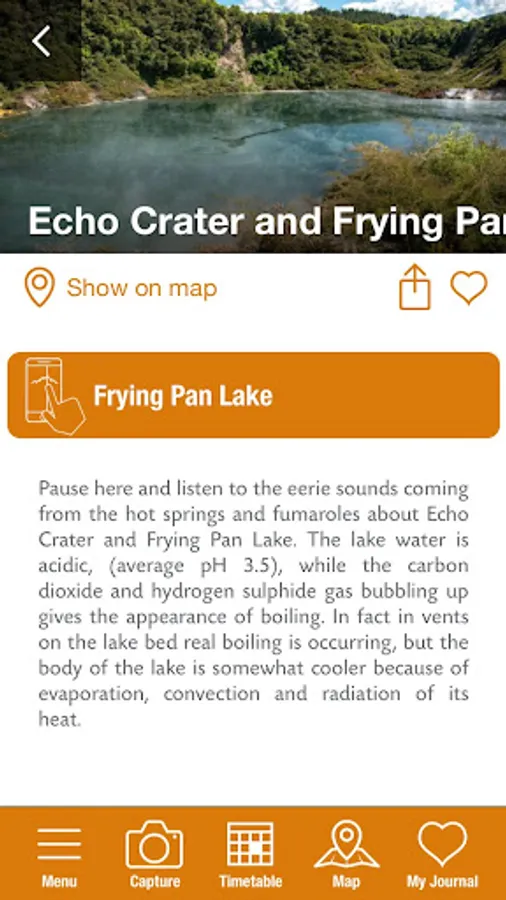 Includes geo-tagged location information and features on the self-guided walk/hike and the Lake Rotomahana boat cruise.