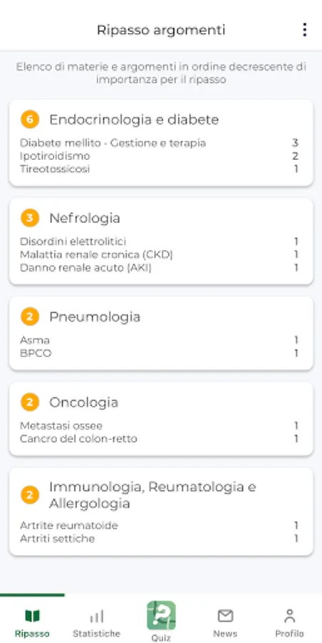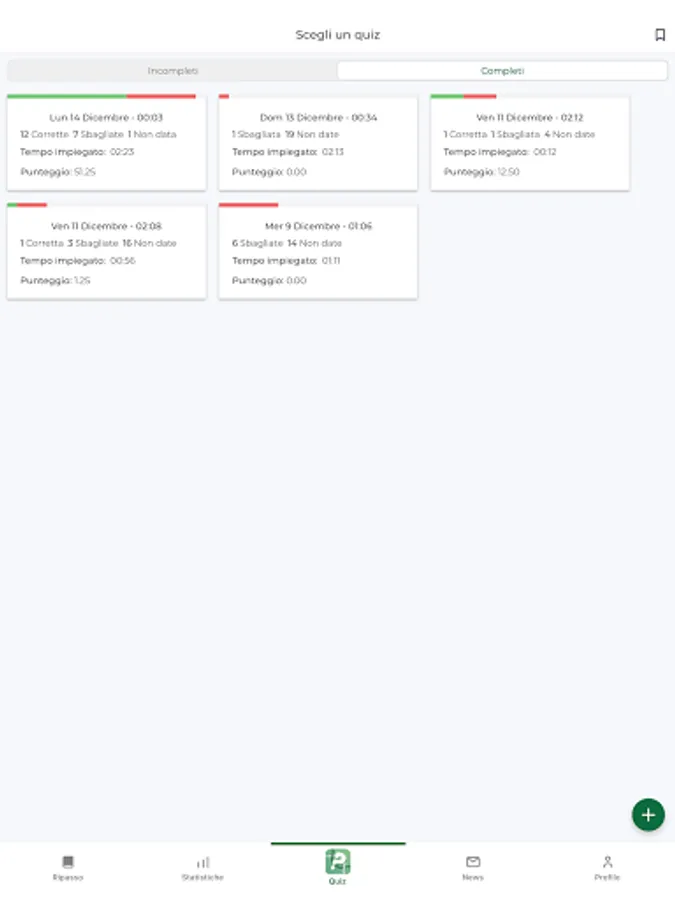 Special Quiz MMG presents the innovative Review mode. After each quiz has been carried out, the App will highlight the topics to be reviewed based on the scores obtained, highlighting the wrong questions with the related explanations. You can review the topics directly from there, or rely on your notes and trusted books, on which you are used to studying. In this way the App helps and supports you in your study, addressing you to the "high performance" topics, which allow you to greatly increase your GP test score with minimal effort.