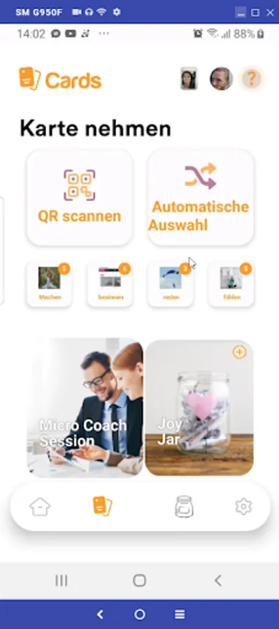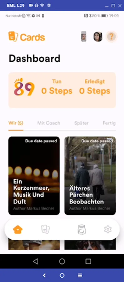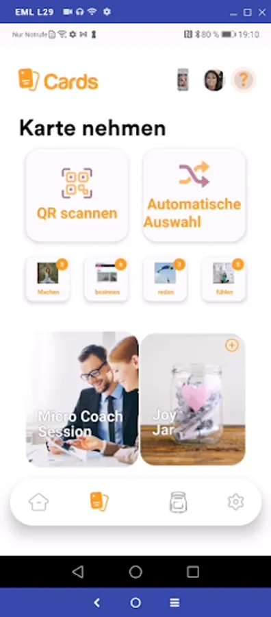 Game and Community based Coaching; new approach of preventive coaching activity. a Card is your task and this task will help you to develop further. Cards are categorized in stack and 4 stacks are an edition which you play. we have an abo and single card mode