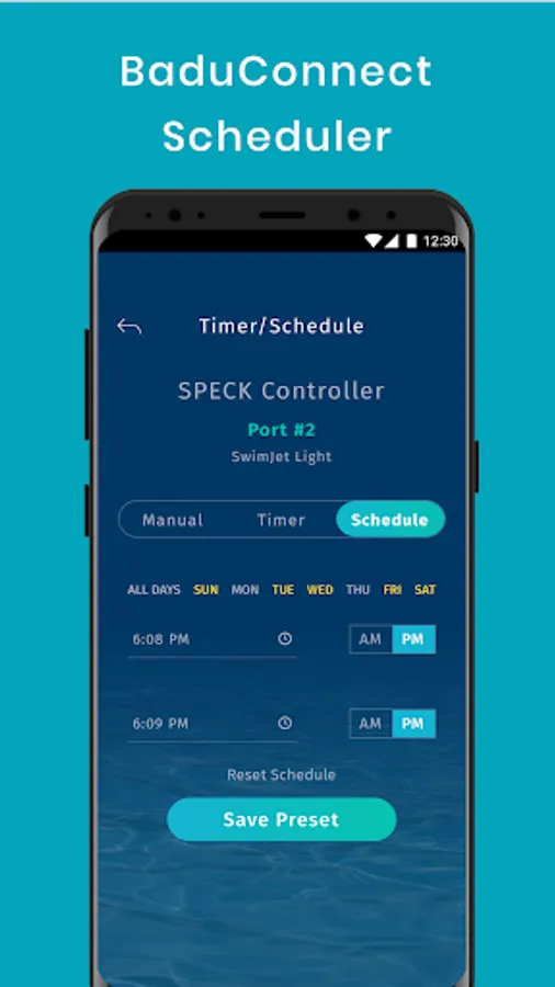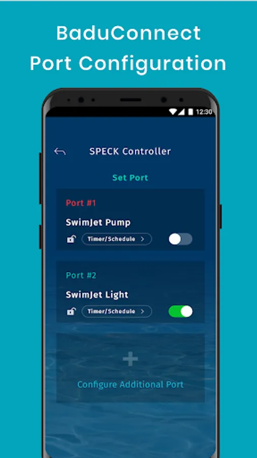 BADU Connect from SPECK Pumps gives you a convenient way to manage your Badu® SwimJet System & Pool. It allows you to manage your SwimJet’s pump, lighting, or other accessories, via the internet from anywhere in the world. Setup schedules, turn devices on off at a moment's notice and even invite friends, or pool professionals to manage your devices too.