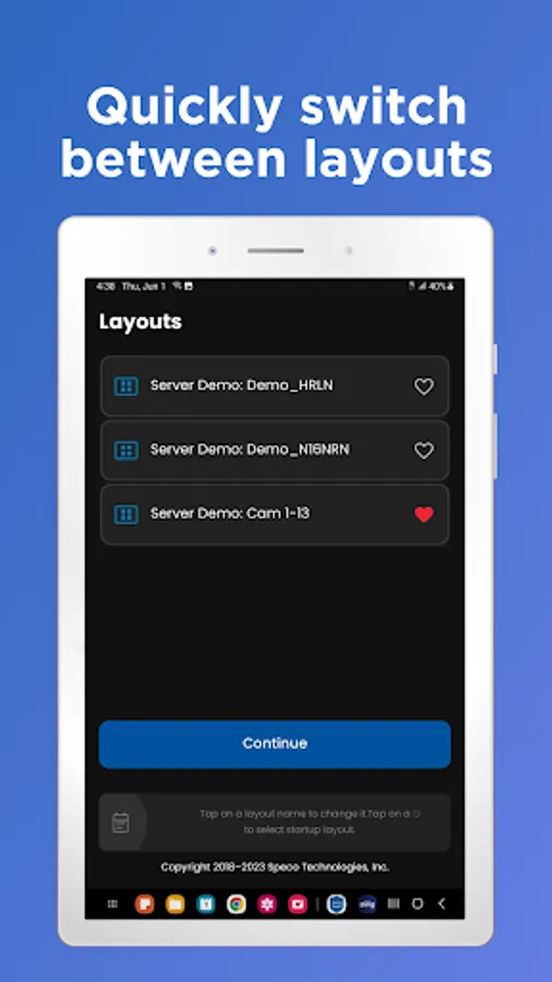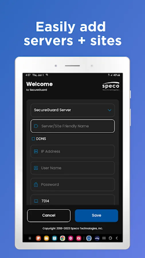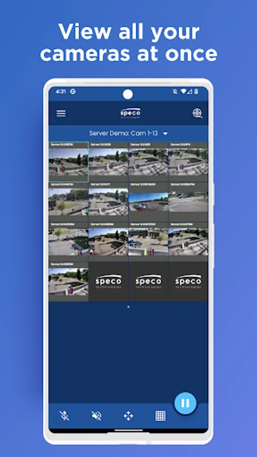 SecureGuard® is Speco Technologies' solution for viewing live or recorded video directly from NVRs, DVRs and IP cameras or coming into one or more SecureGuard® Servers. Create your own layouts to select which cameras to view from any site. Swipe right or left to view different groups of cameras. Double-tap to place one particular camera in full screen. Pinch to pan and zoom when viewing a single stream.