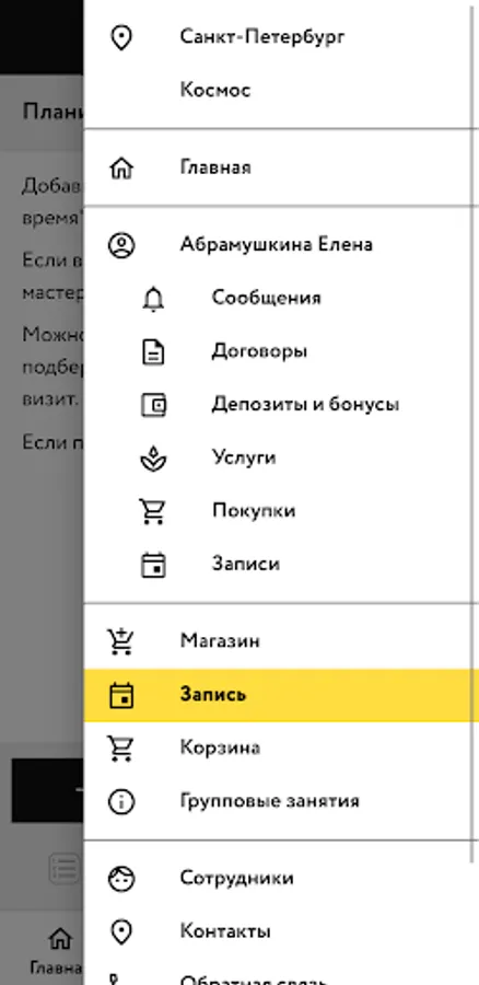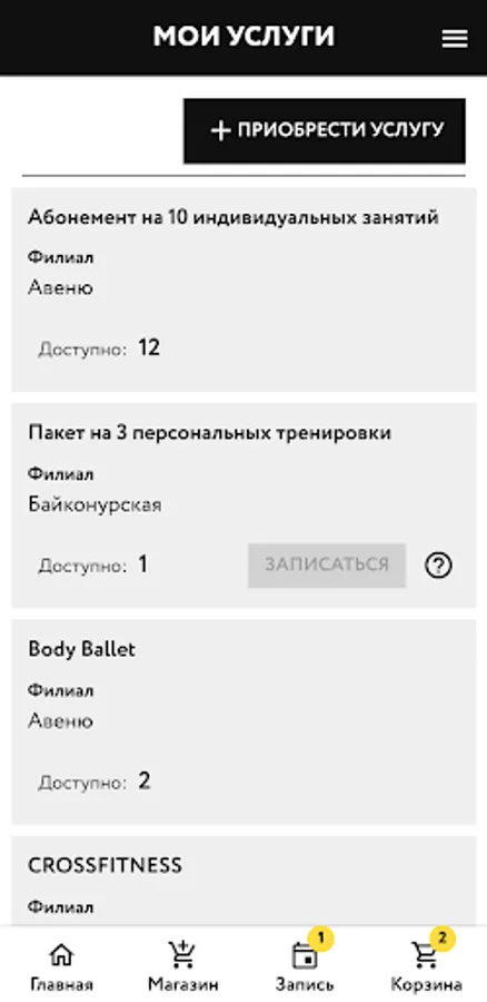 – purchase services: personal training, sign up for a massage, at SFB BARBER and much more.