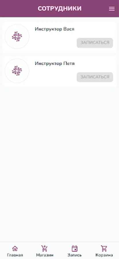 Demo application for clients of a fitness club, sports center, swimming pool, diving center, climbing wall, martial arts club.
