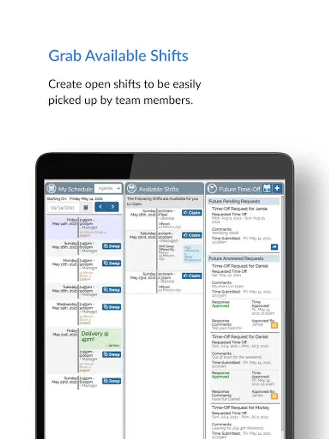• Create open shifts for team members to pick up—great for extra hours, volunteers and events!