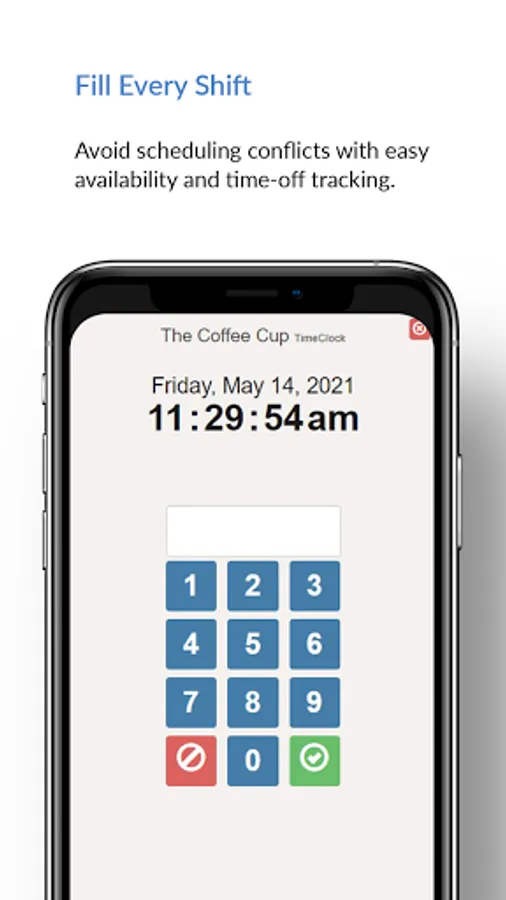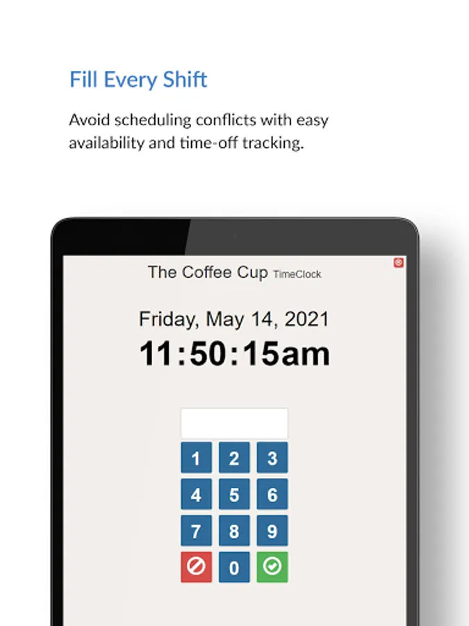 • Allow team members to clock in and out via a device you've designated as an on-site kiosk and/or use their own devices