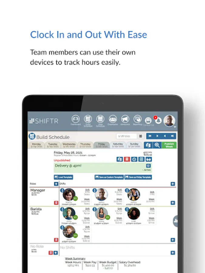 SHIFTR makes it easy to build and manage the employee schedule and track attendance. Start scheduling for free and create the team schedule in minutes!