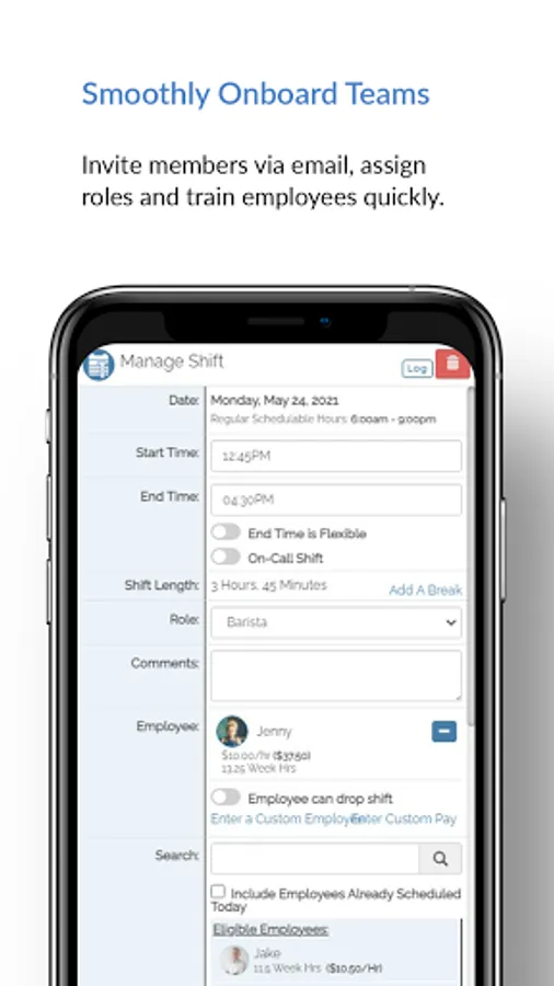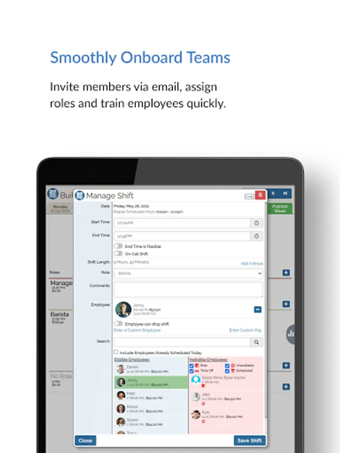• Assign team members to their qualified roles, departments and locations for fast and accurate scheduling