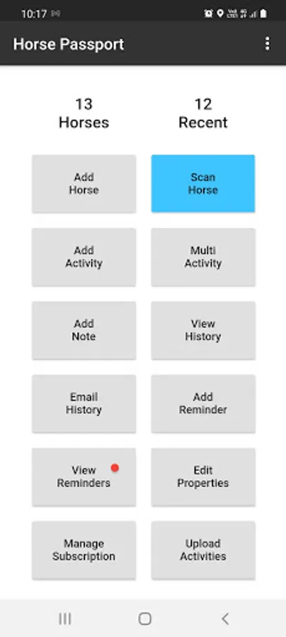- Pair the app to a Bluetooth-enabled scanner and identify the horse id via a microchip – available for Thoroughbreds and others coming.