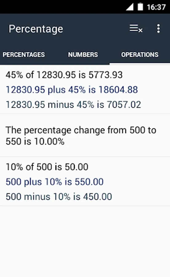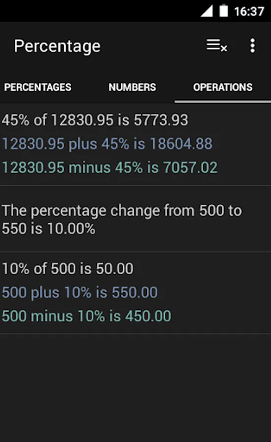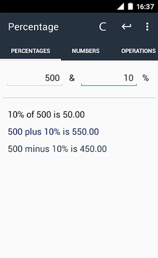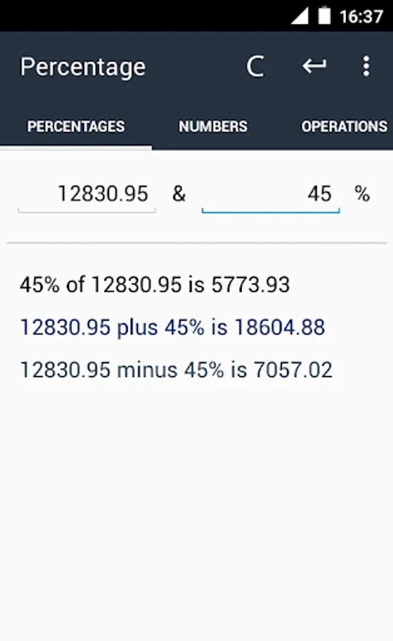 - Calculate the percentage, the percentage increase and percentage decrease of a number, all in one single operation.