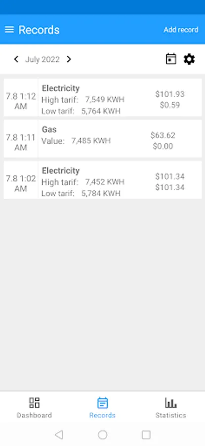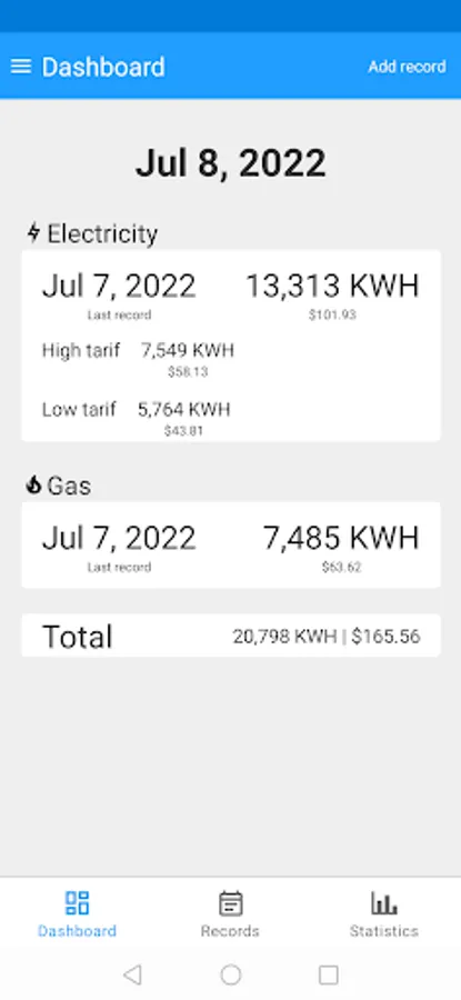 Track your power consumtion between days, months and years in simple table or in a chart.