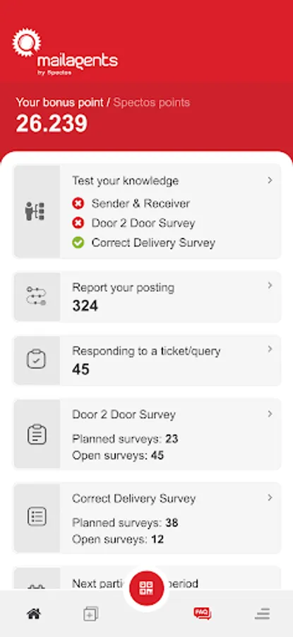 Participating in Royal Mail quality surveys made easy - the Mailagents app is the central platform for sending and receiving panellists. This is where you do all your reporting and communication: Enter data about test items, receive information about current activities and upcoming surveys, access an extensive knowledge base and quizzes, check your bonus points and request vouchers to redeem rewards.