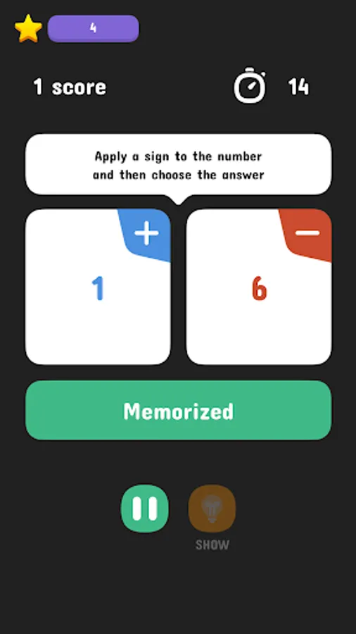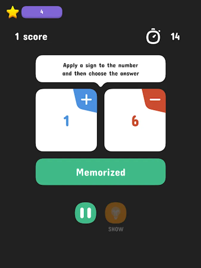 Spectre Mind: Simple Math is a fun free-to-play game for improving your memory. You're given two cards with numbers and math signs (addition, subtraction, division or multiplication) that you have to successively apply to these numbers. These are math equation. Memorize them and calculate the solution. Then choose the right answer. You have limited time to make a decision. Answering correctly gives you more time. Making a mistake reduces you time.