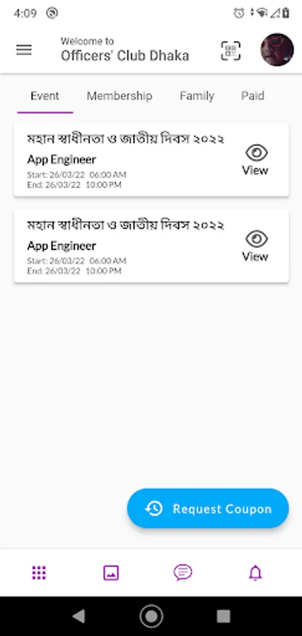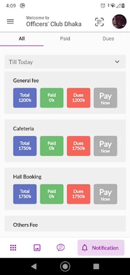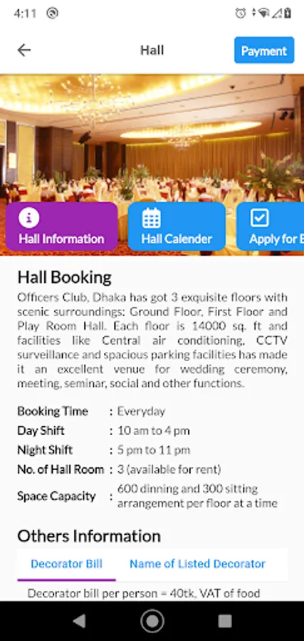 Features on the Officers' Club Dhaka app include: