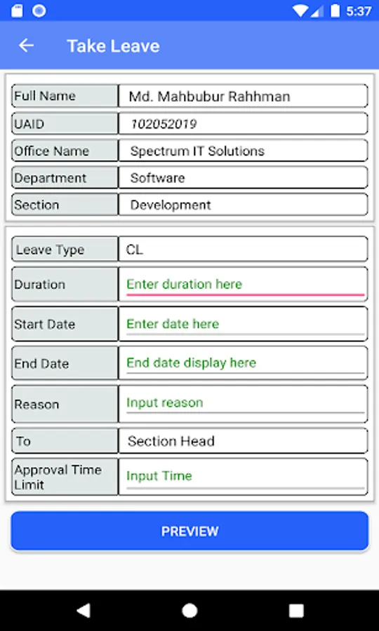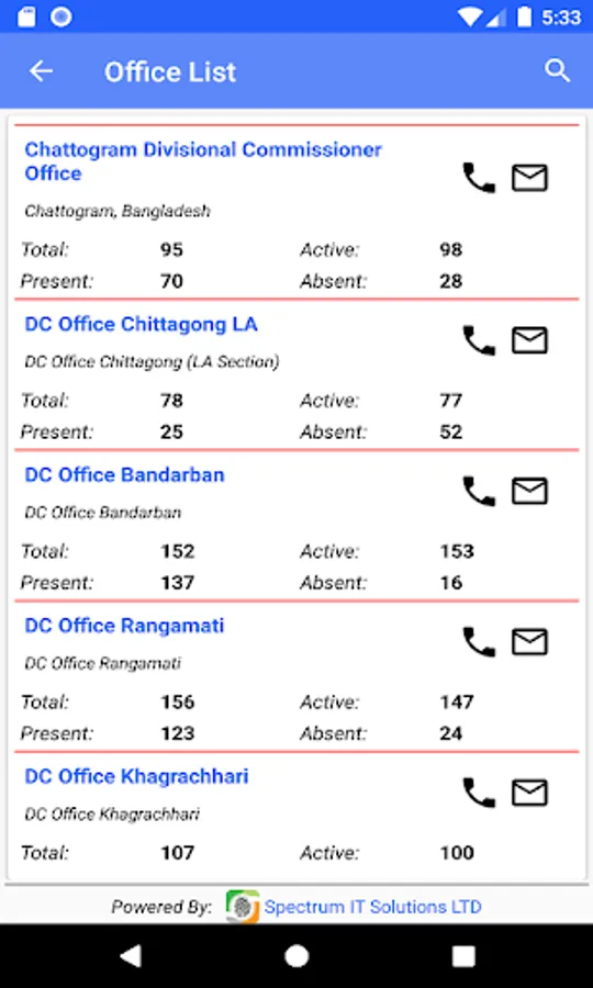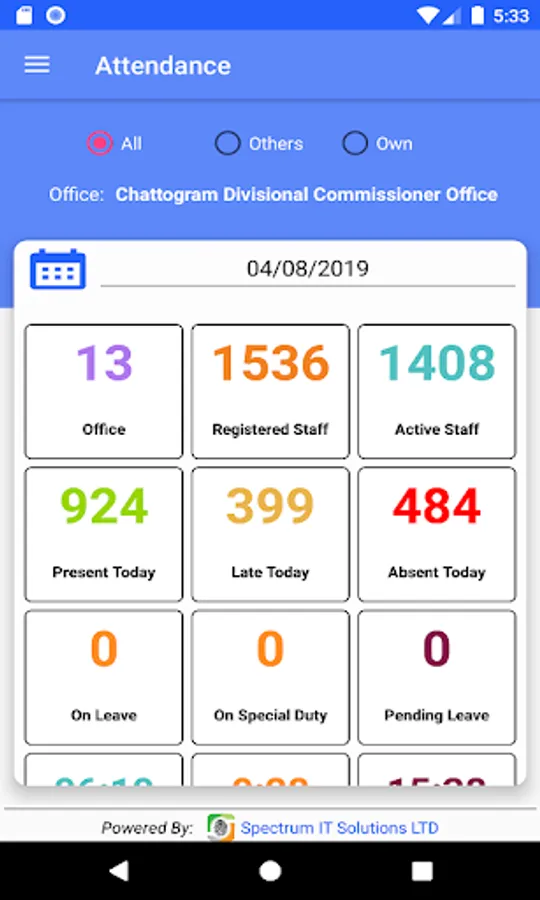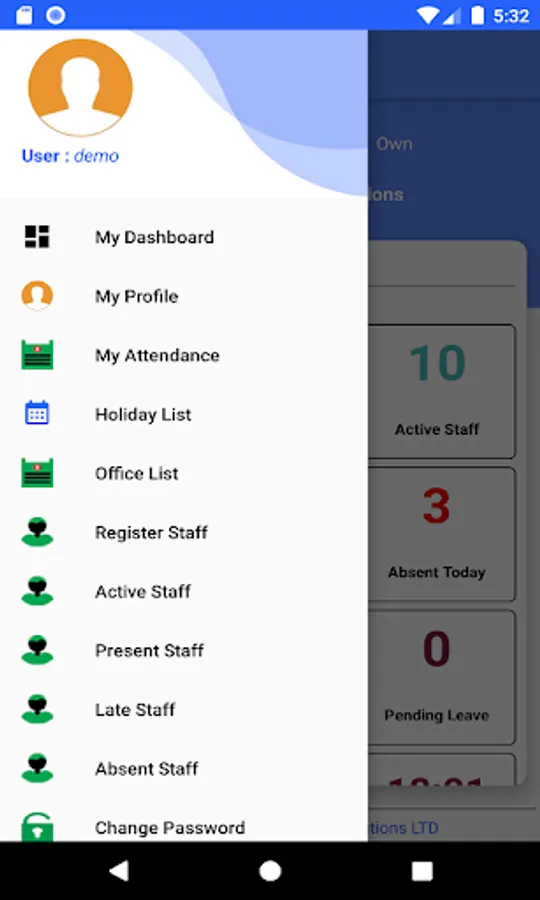 Admin and only verified User can login using this app and can get every update of staff about present, absent, late, on leave, on special duty, number of active staffs, registered staff and so on.
