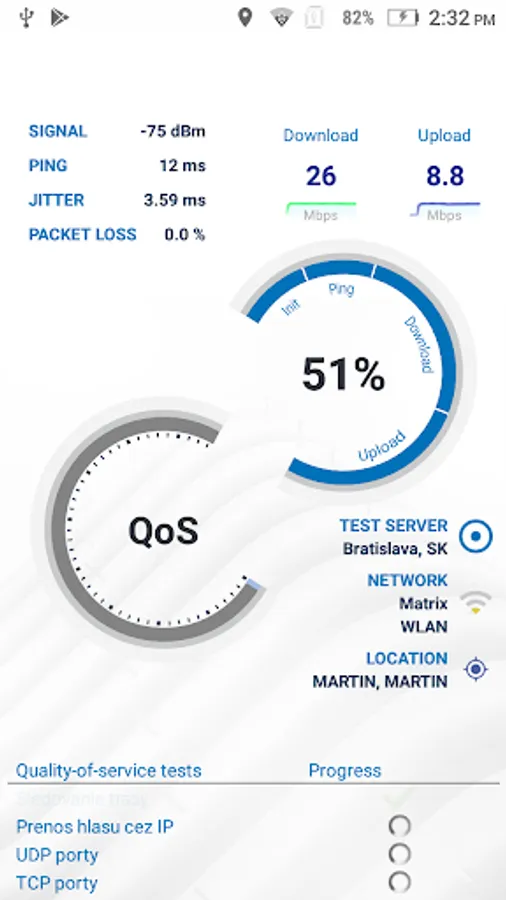 - several quality of service tests, which tells the end-user if the operator is acting net neutral. This includes testing of TCP-/UDP-ports, a VoIp/jitter test, proxy tests, DNS tests, etc.