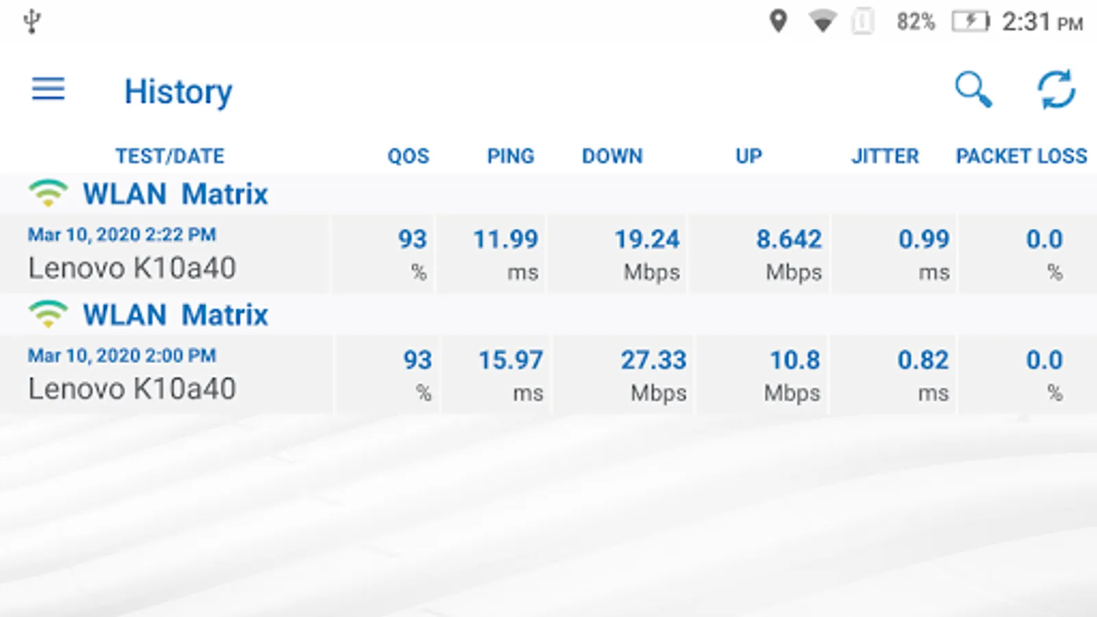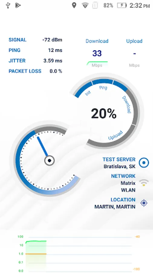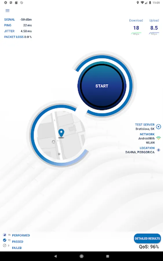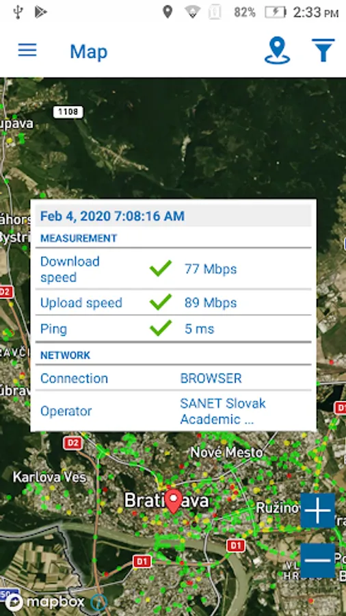 - a map view of all test results with filter options for test parameters, statistics, operator, device and time of day