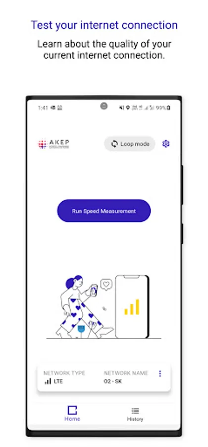 The AKEP Nettest allows users to obtain information on the current service quality of their Internet connection in the context of net neutrality and provides them with comprehensive information, including statistical data. The AKEP Nettest provides:
