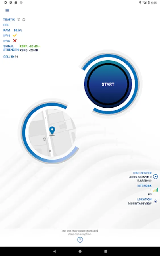 The AKOS Test Net allows users to obtain information on the current service quality of their Internet connection in the context of net neutrality and provides them with comprehensive information, including statistical data. The AKOS Test Net provides: