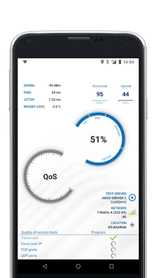 - several quality of service tests, which tells the end-user if the operator is acting net neutral. This includes testing of TCP-/UDP-ports, a VOIP/jitter test, proxy tests, DNS tests, etc.