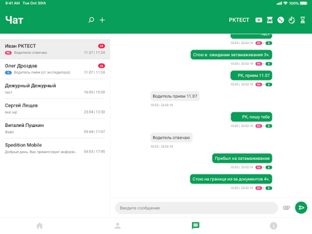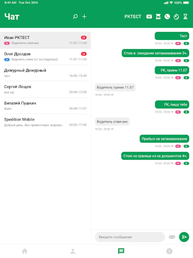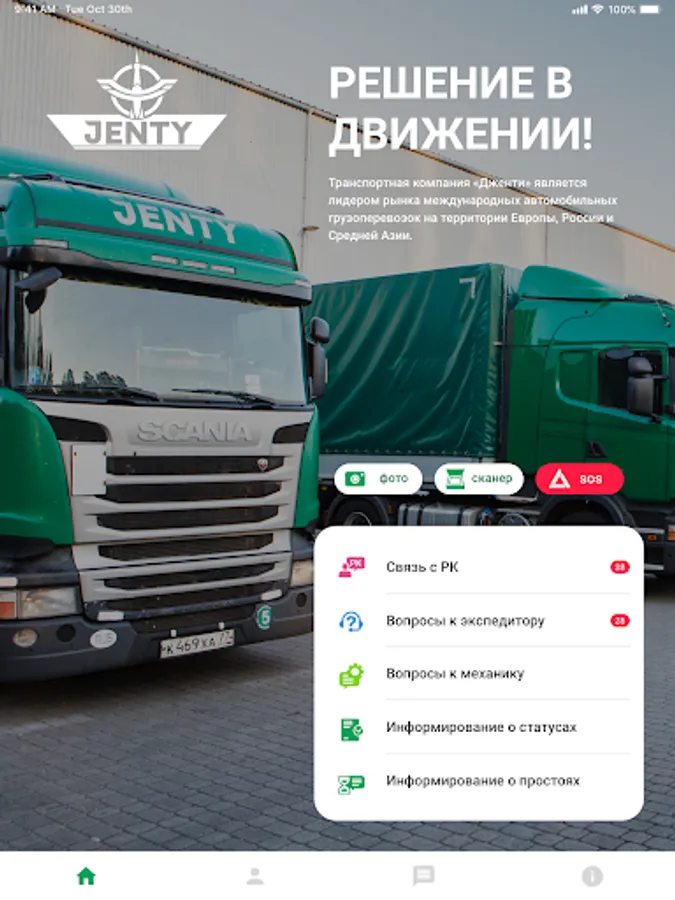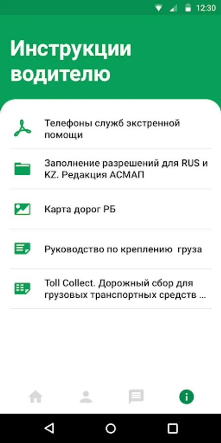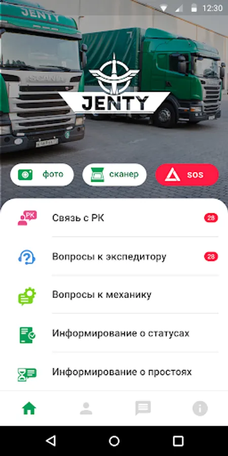 The application provides an opportunity for communication between drivers and their forwarders. It allows you to inform about the status of cargo transportation, to receive a route of movement and gas stations along the route.