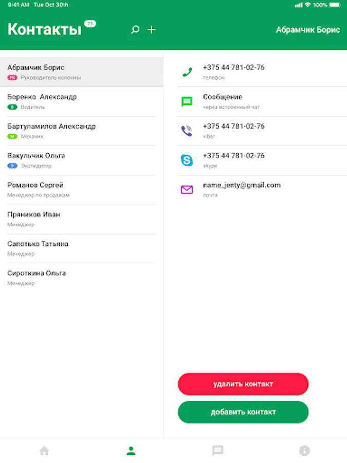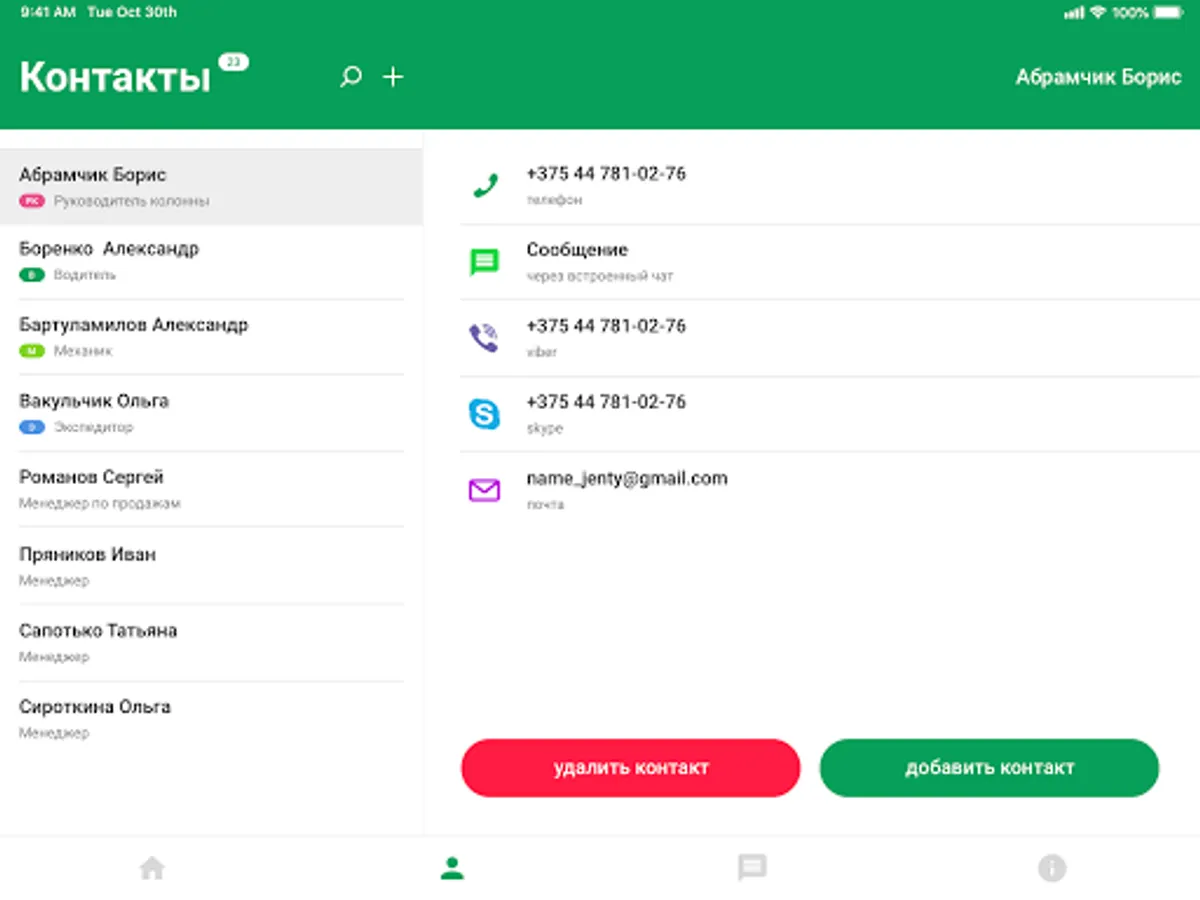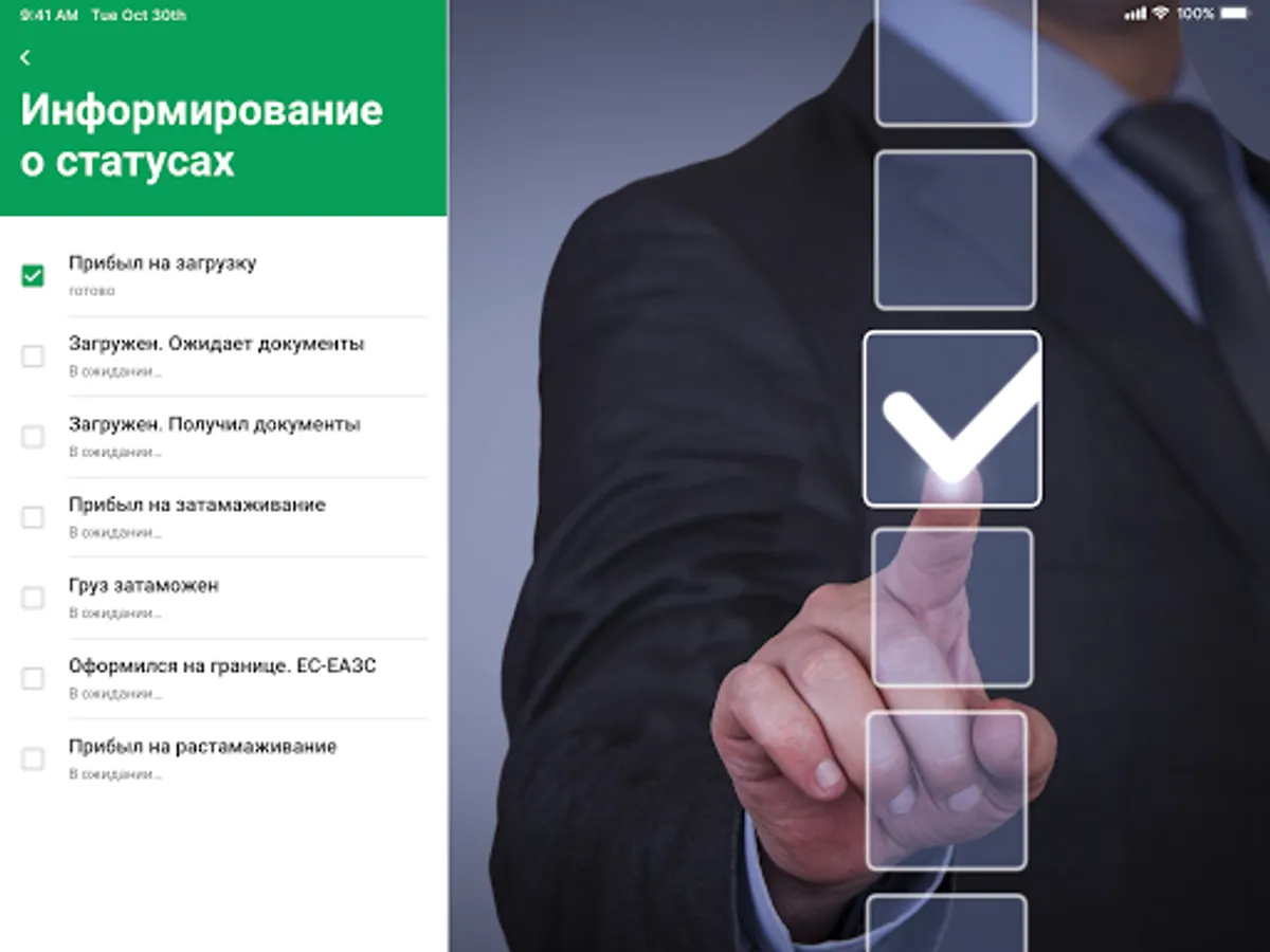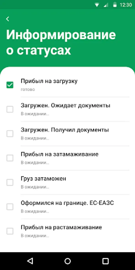 The application provides an opportunity for communication between drivers and their forwarders. It allows you to inform about the status of cargo transportation, to receive a route of movement and gas stations along the route.