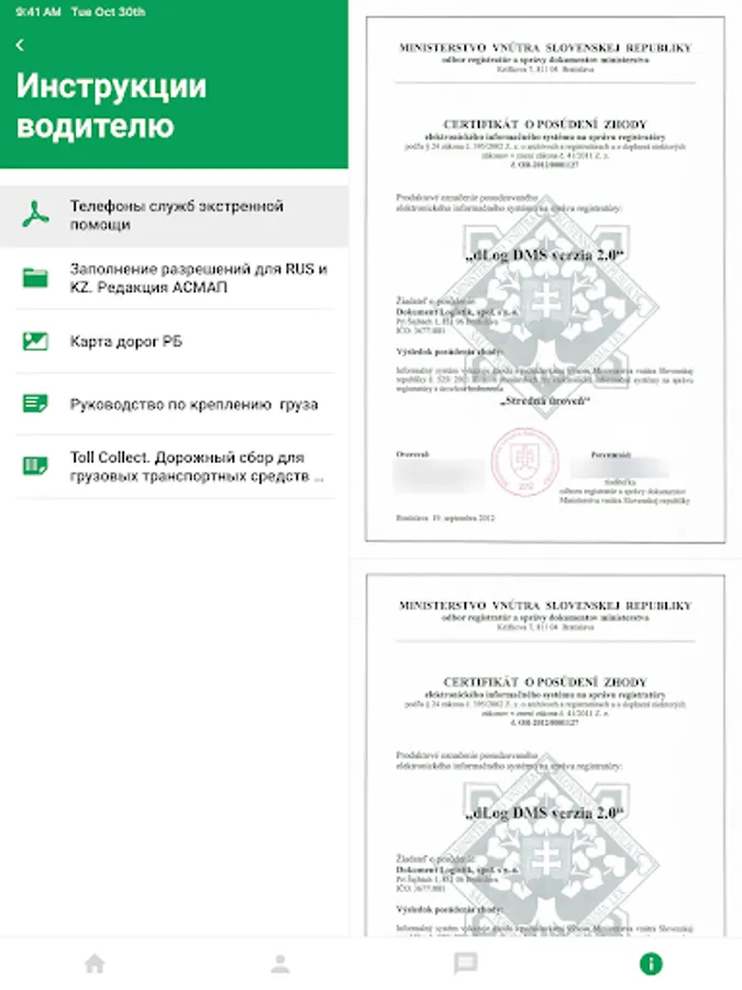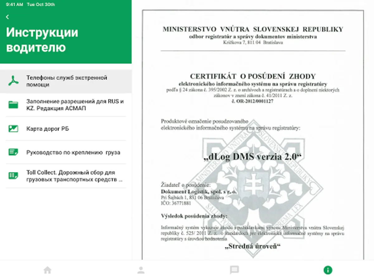 The applications also contains complete information and a set of rules for the implementation of cargo transportation, filling out permits and rules for travel through the territory of the EU and CIS countries.
