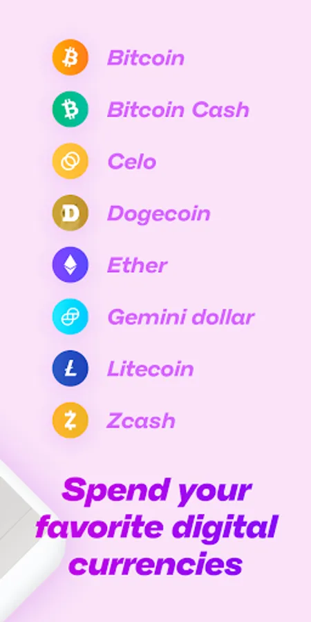 SPEDN currently supports Bitcoin (BTC), Ether (ETH), Litecoin (LTC), Bitcoin Cash (BCH), and the Gemini dollar (GUSD), with many more coins coming soon.