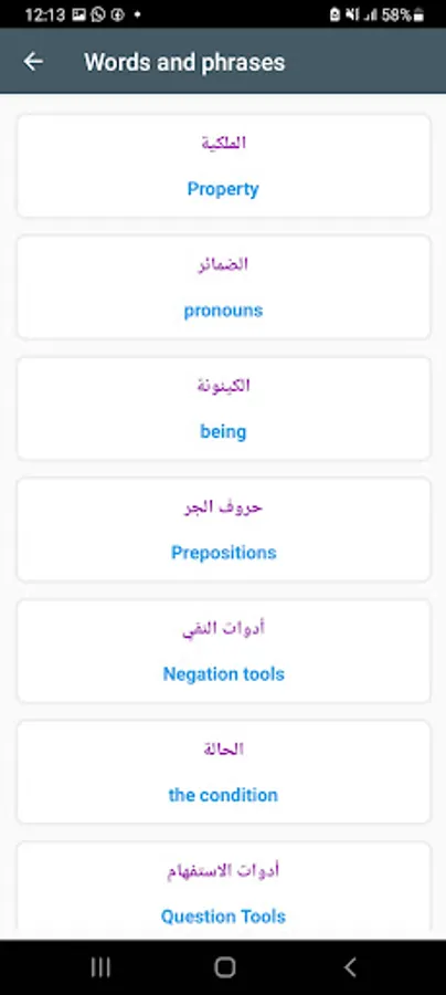 ويوجد ايضا قسم يضم مجموعة كبيرة من العبارات الاكثر استخداما في اللغة الانجليزية.