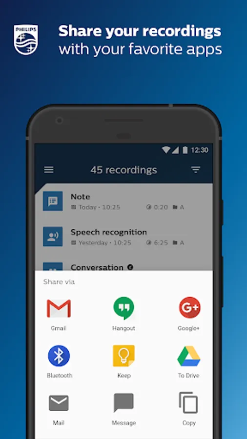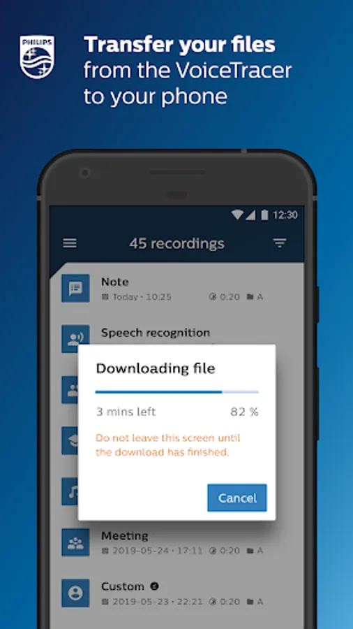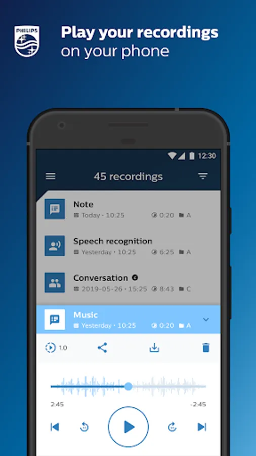 Transfer your recordings straight from your Philips VoiceTracer to your smartphone via Wi-Fi to playback and instantly share them with friends and family using this convenient app.