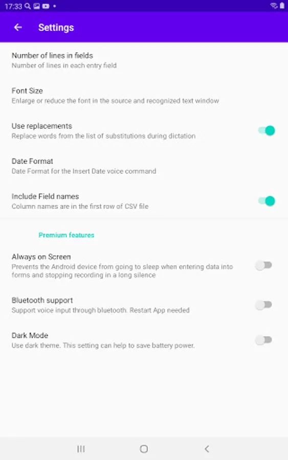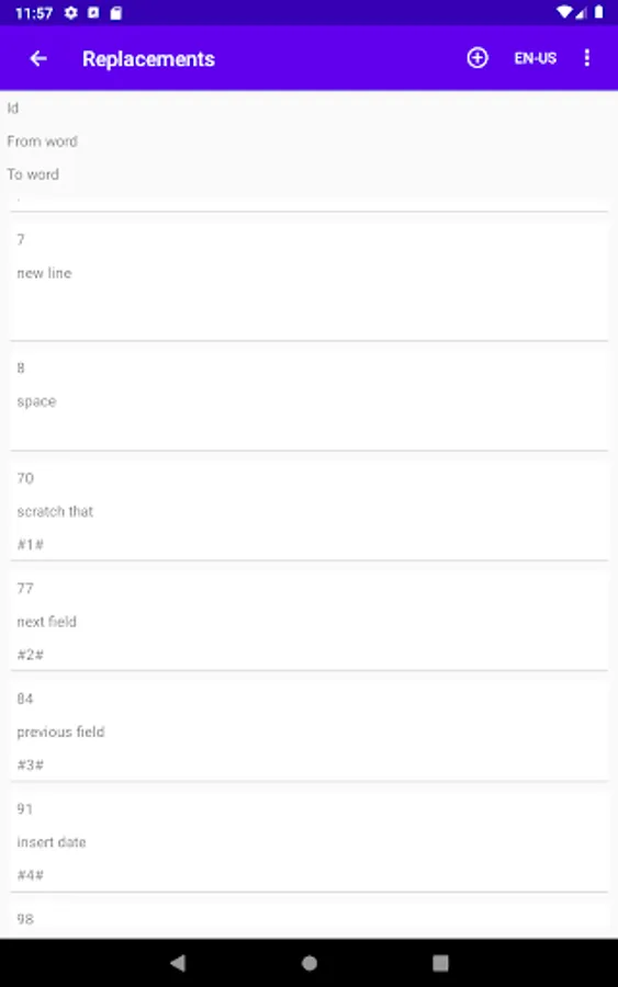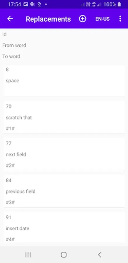 There is a customisable list of replacements, voice-entered phrases, as well as voice commands for navigation, undo and insert dates.