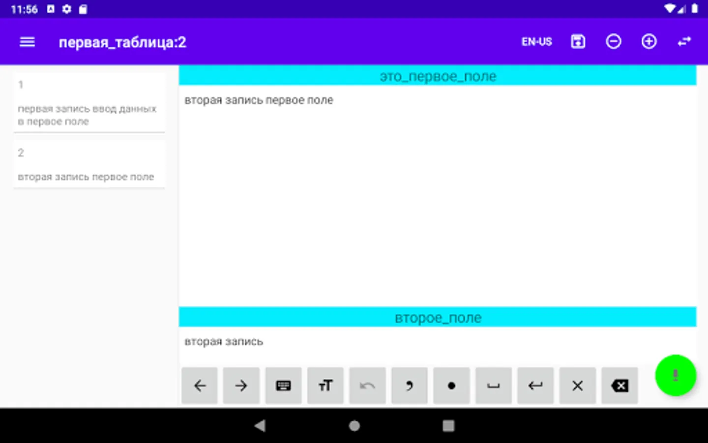 There can be many such tables. You can quickly switch between tables. Exporting and importing data allows you to save and transfer data to another device or use it in other applications (such as Word or Excel).