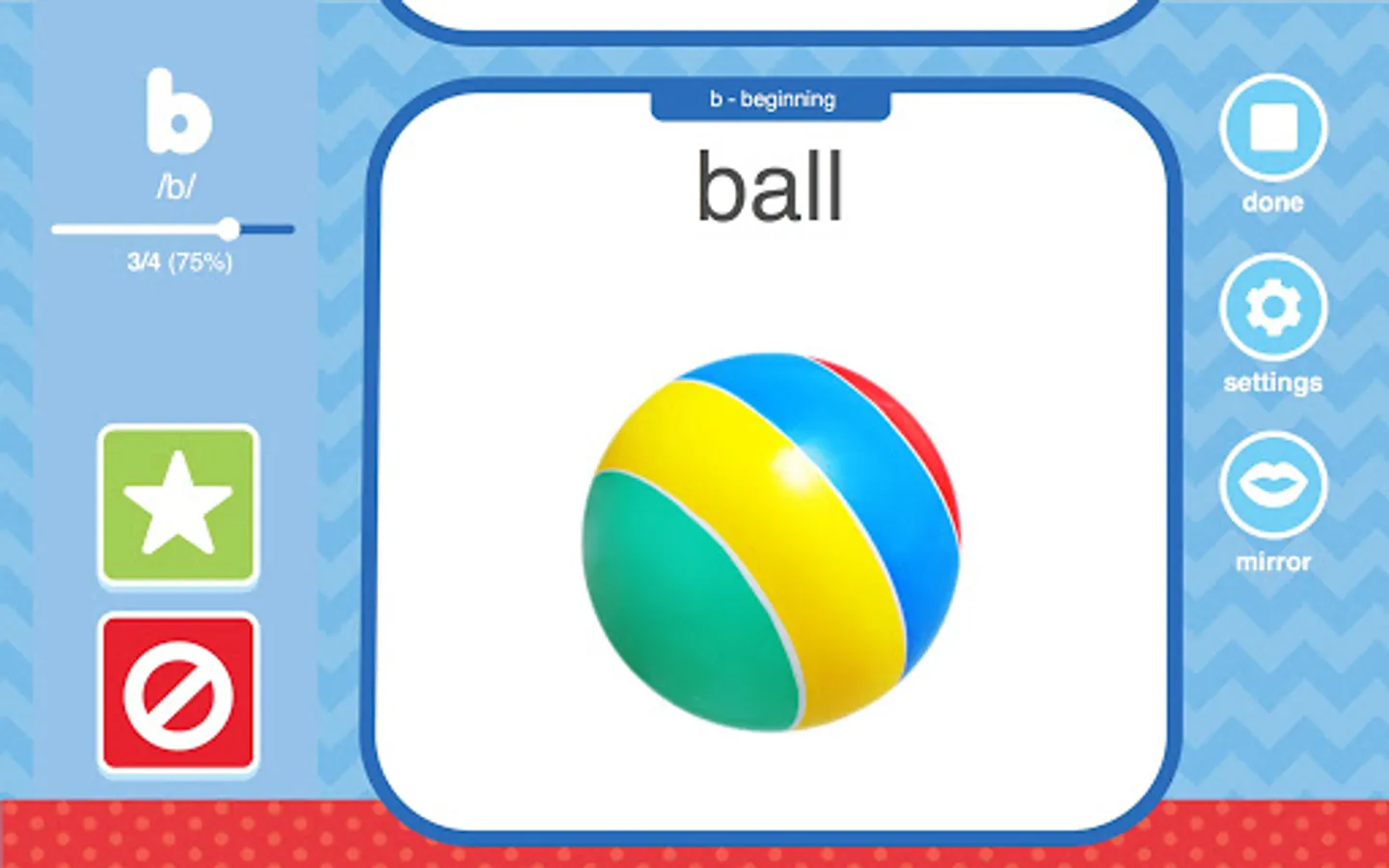 The Speech Essentials speech therapy app has everything you need for articulation practice, and each station is very simple to navigate so speech therapists and parents can use this app to facilitate fun and engaging therapy. Try the B sound out for free, then pay $1.99 for any additional sounds you may need.