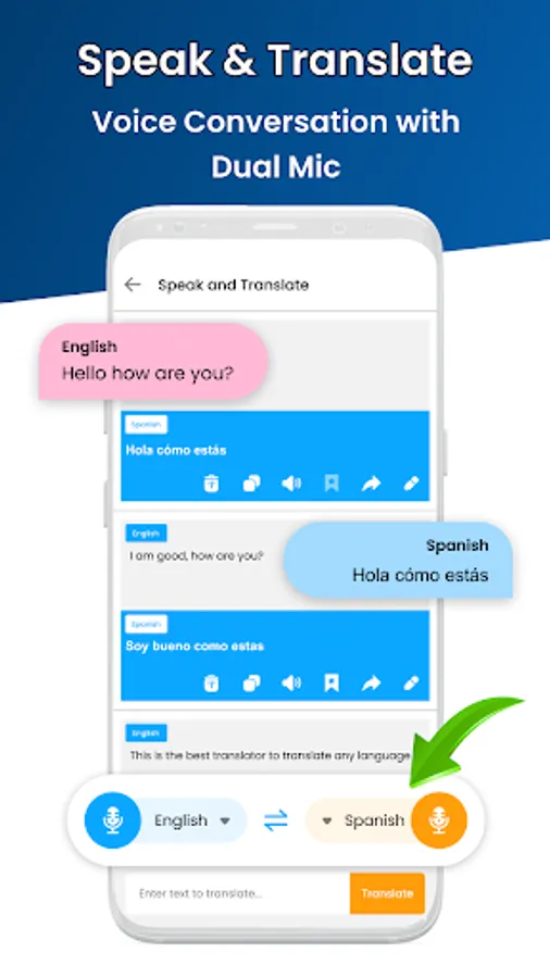This Speak and Translate(ترجمه) voice translator app is green to apprehend and unexpectedly convert it into your favored language. Speak and Translate app meet the desires of all types of voice translations, language interpretation, and dictionary desires. In this Speak and Translate, voice translator app, and interpreter, there are many first-rate functions and options. The major features are as follows.