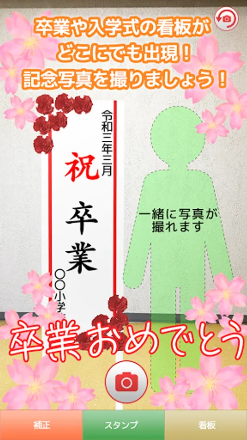 It is an AR application that can take a signboard and commemorative photo of the graduation ceremony and entrance ceremony.