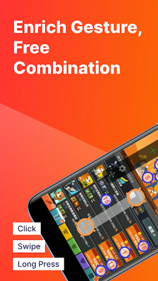 Combined click mode supports simultaneous tap, swipe and long press. When using the mobile phone auto clicker app to play games, you may not only need to automatically click certain points on the screen but also need to automatically swipe and long press to help you perform other operations.