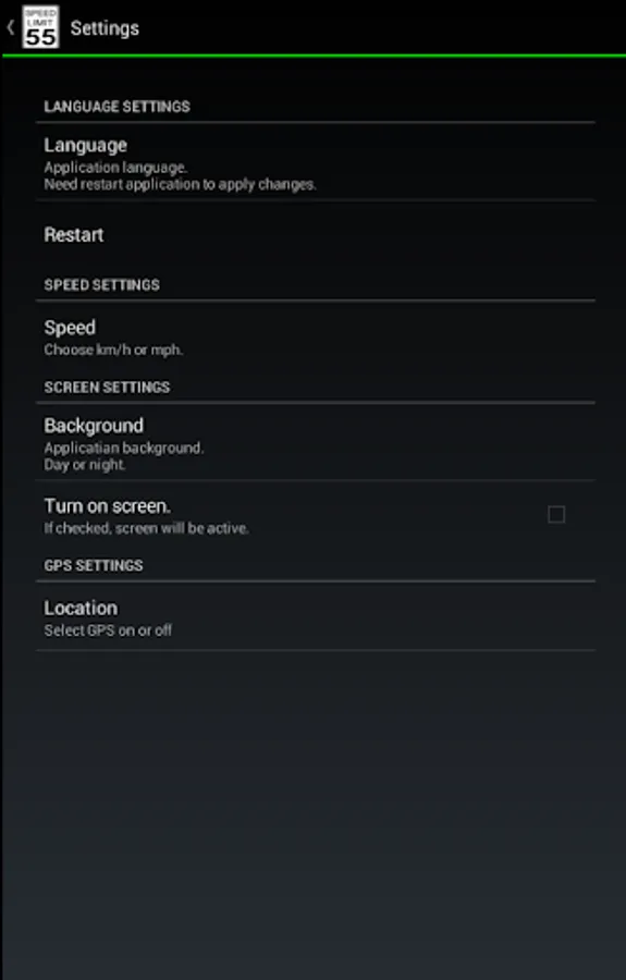 • Able to keep screen active during usage of application (if checked in settings).