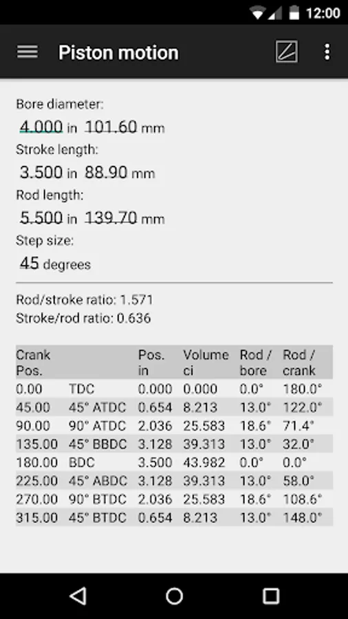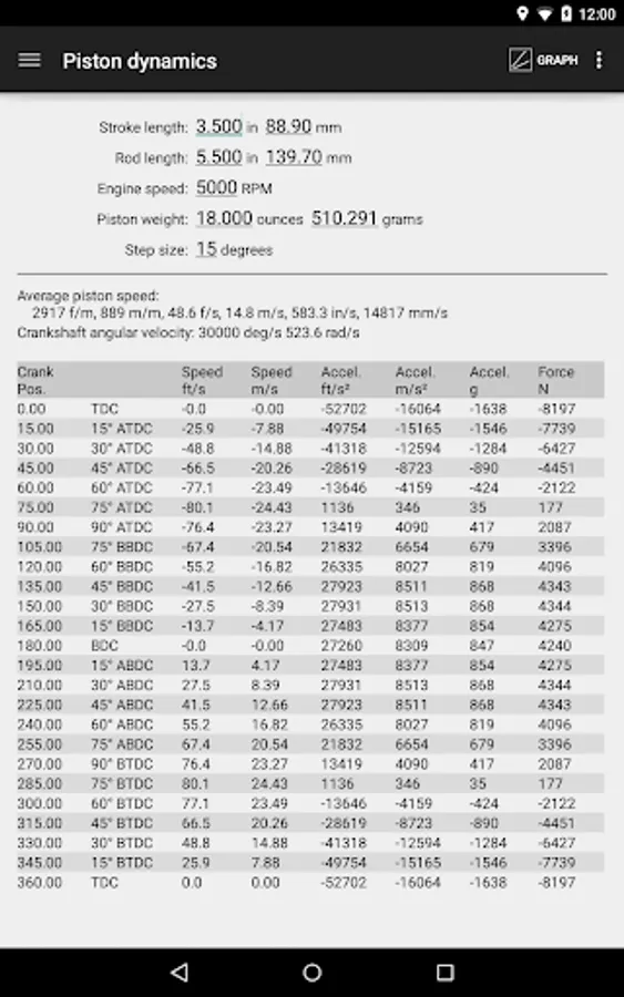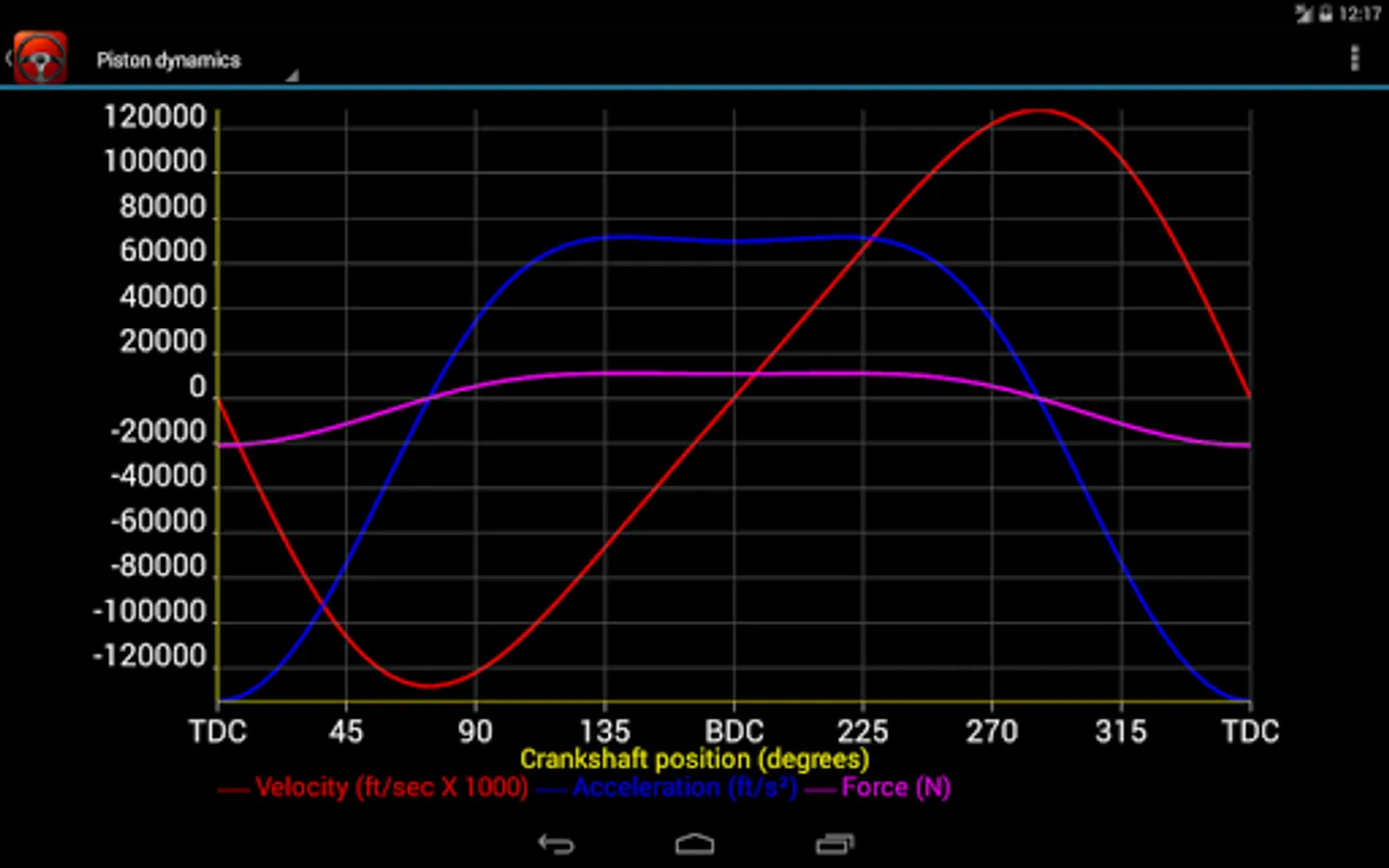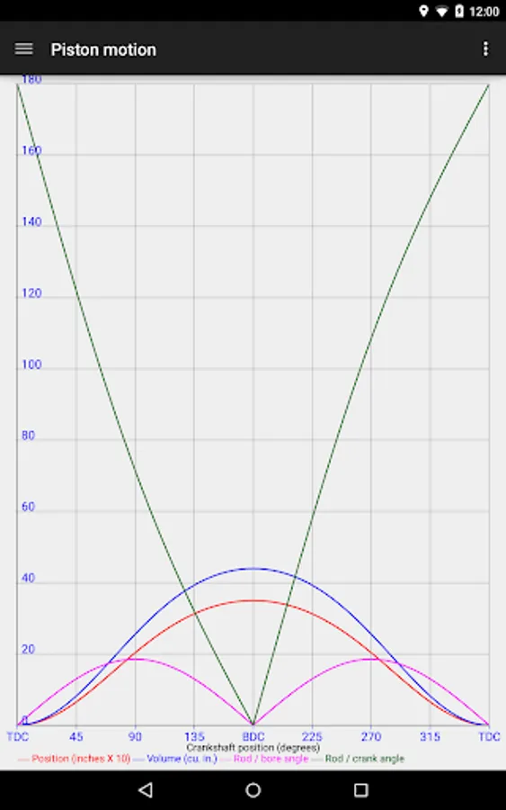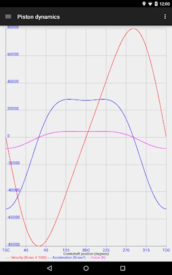 - Piston position, velocity, acceleration, force